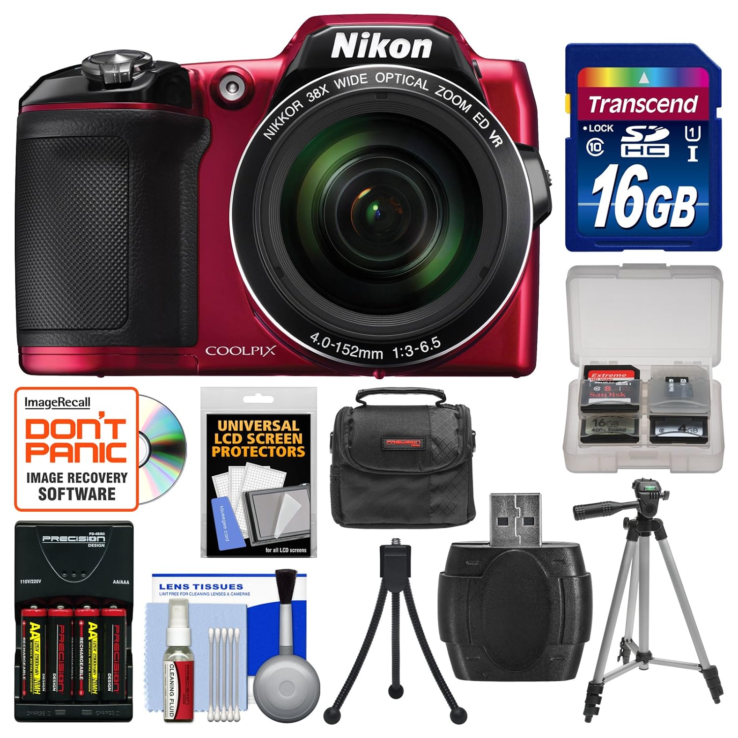 [1] Nikon Coolpix L840 Wi-Fi Digital Camera (Red) + [2] Transcend 16GB SDHC 300x Card +