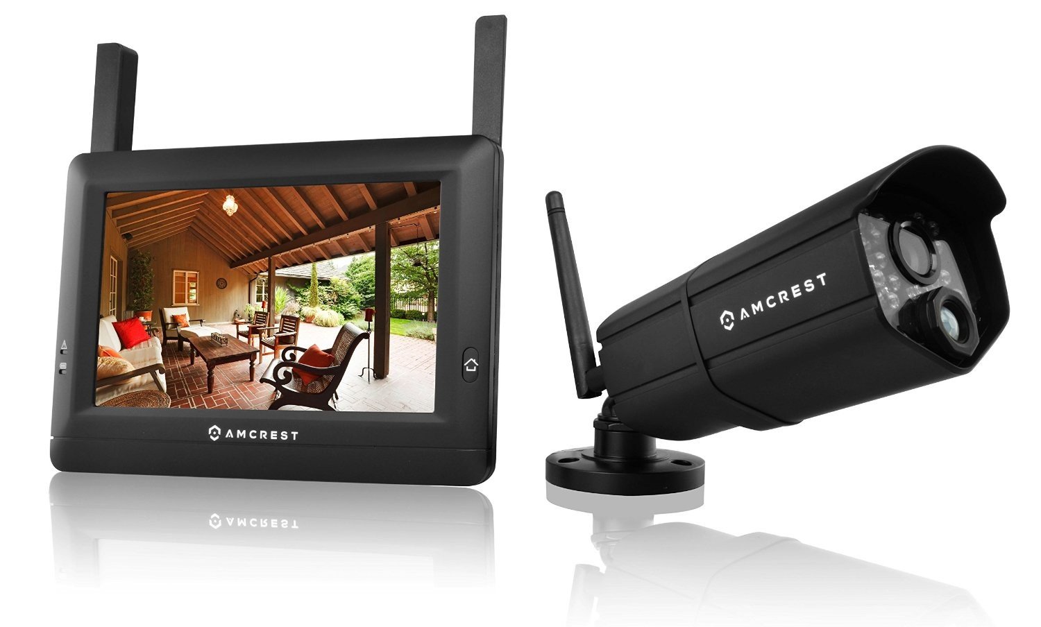 Finally, there is a wireless camera that comes with its own monitor; it has never been more fun to watch what you love!7-Inch Wireless Touch-Screen Monitor / 720p HD Wireless Camera / Micro SD Card Capable / Smartphone or Tablet App for Remote Viewing / Motion Detection / PIR Sensor / 300m Wireless Range / Supports up to 4 Cameras Features:-720p HD Video-Supports Up to 4 Cameras-PIR Sensor-PIR Sensor-Micro SD Card Recording-Amcrest Sight Smartphone/Tablet App-7-Inch Touch-Screen Monitor-IP66 Weather Resistant What's Included:1 x WCAM895 720P IP Camera1 x 7-Inch Monitor1 x 9V/800mA Power Adapter for the Camera1 x 5V/2A Power Adapter for Monitor1 x Antenna1 x Allen Key1 x Ethernet Cable User Manual1 Year Warranty When Purchased from Foscam